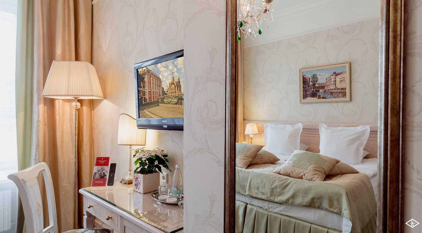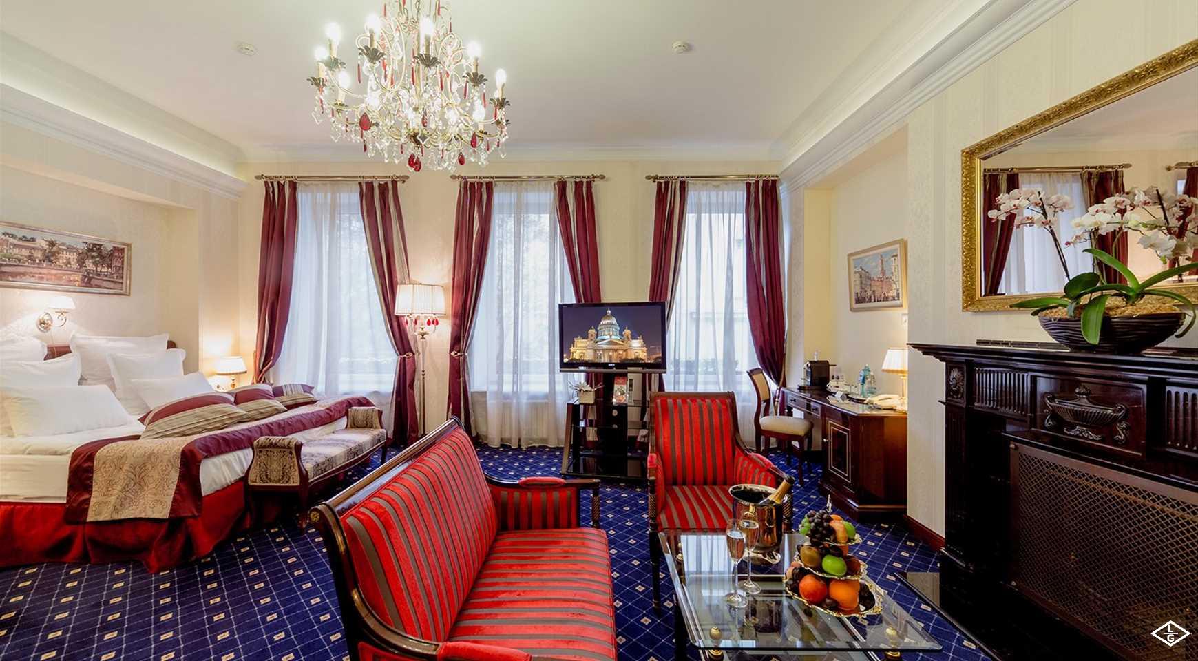 Шикарный пятизвездочный отель расположен в самом сердце Петербурга, между Невским проспектом и Михайловским сквером. Канал Грибоедова, Храм Спаса-на-Крови, Михайловский замок - эти центральные достопримечатльности Петербурга находятся в трех минутах ходьбы от отеля. Гранд Отель Европа, старейшая гостиница Санкт-Петербурга, построенная в 1820-30 годы при участии архитектора Росси. После реконструкции 1875 года здесь останавливались самые знаменитые гости города - принцы и дипломаты, писатели и артисты. Лестницы отеля помнят легкий шаг Анны Павловой, здесь жили Бернард Шоу, Тургенев, Чайковский, а также члены королевских семей Великобритании, Дании, Норвегии, Голландии, Малайзии, потомки семьи Романовых, политики - Билл Клинтон, Жак Ширак, артисты и музыканты, среди которых были Галина Вишневская и Мстислав Ростропович, Монсеррат Кабалье, Пласидо Доминго, Хулио Иглесиас, Элтон Джон, Уитни Хьюстон и другие.