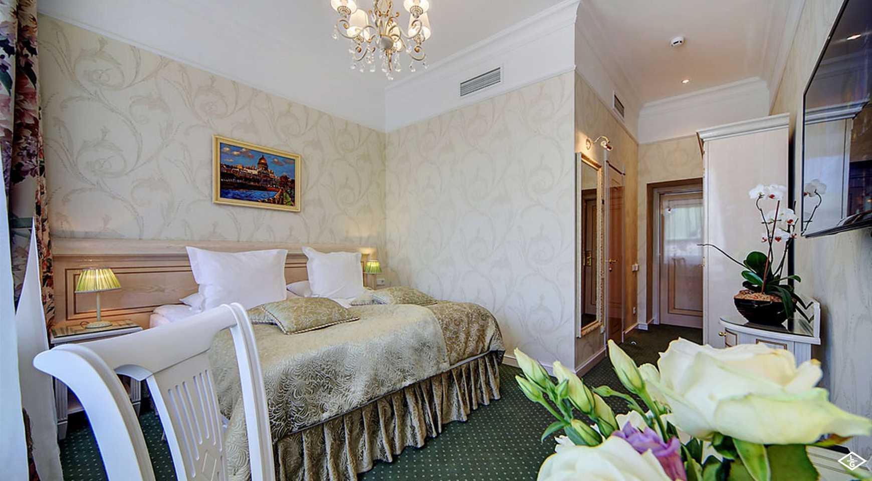 "Marco Polo" - воплощение изящного и высокого стиля Петербурга 19 века. Номера отеля выполнены в стиле Ампир и напоминают будуары императриц Российской Империи: роскошные кровати, фантазийные балдахины и приятная цветовая палитра интерьера. Выбирая отель "Marco Polo" Вы выбираете отдых в Петербурге, достойный особ знатных кровей. На территории отеля находится одноименный ресторан "Marco Polo", в зале которого стоит большой чёрный рояль и камин, охраняемый ЮНЕСКО: он сохранён в первозданном виде со времён постройки здания в 1874 году архитектором Ф. Ф. Рудольфом. Гостей отеля ждет непрвзойденный сервис и гостеприимство, а это как раз то, чот нужно в день вашего "идеального свидания".